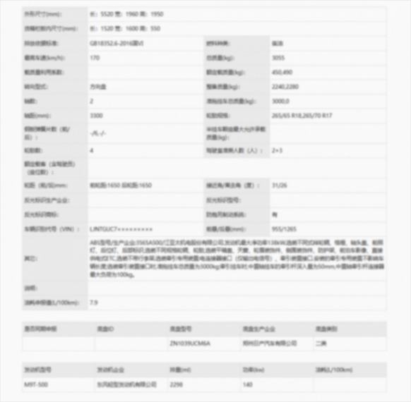 動力配置部分,此次申報的新車提供了汽油和柴油兩種動力,汽油版搭載的是沈陽航天三菱型號為4K31TD的2.0T發動機,最大功率190千瓦。柴油版搭載的是來自東風的型號為M9T-500的2.3T柴油發動機,最大功率140千瓦,油耗申報值為7.7-7.9升/100公里。