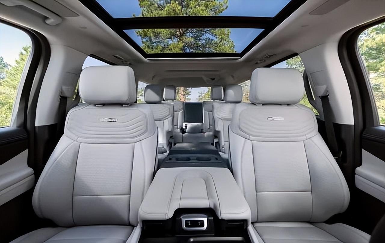 車身也更加具有北美越野車的氣息,采用了經典的亮黑色車漆,還采用了這種平直的線條勾勒,增添了整車的硬派氣息。全車的黑色隱私玻璃與車身融為一體,車窗邊緣加入了亮銀色裝飾條點綴,前翼子板處還加入了“platinum”銀色鍍鉻徽標,再加上寬大的車門、22英尺的渦扇式輪圈,增添了更多的霸氣之感。新車采用2+3+3的8座設計,前后排中央都有寬大的扶手,第二排座椅還有獨立的娛樂顯示屏,并且第二排和第三排的中央座椅靠背均可單獨放倒,可以在中央放置較長的物品而不影響乘坐。其前排座椅帶30向電動調節、5種按摩模式,二排則為“指揮官座椅”,支持加熱、通風、按摩功能。