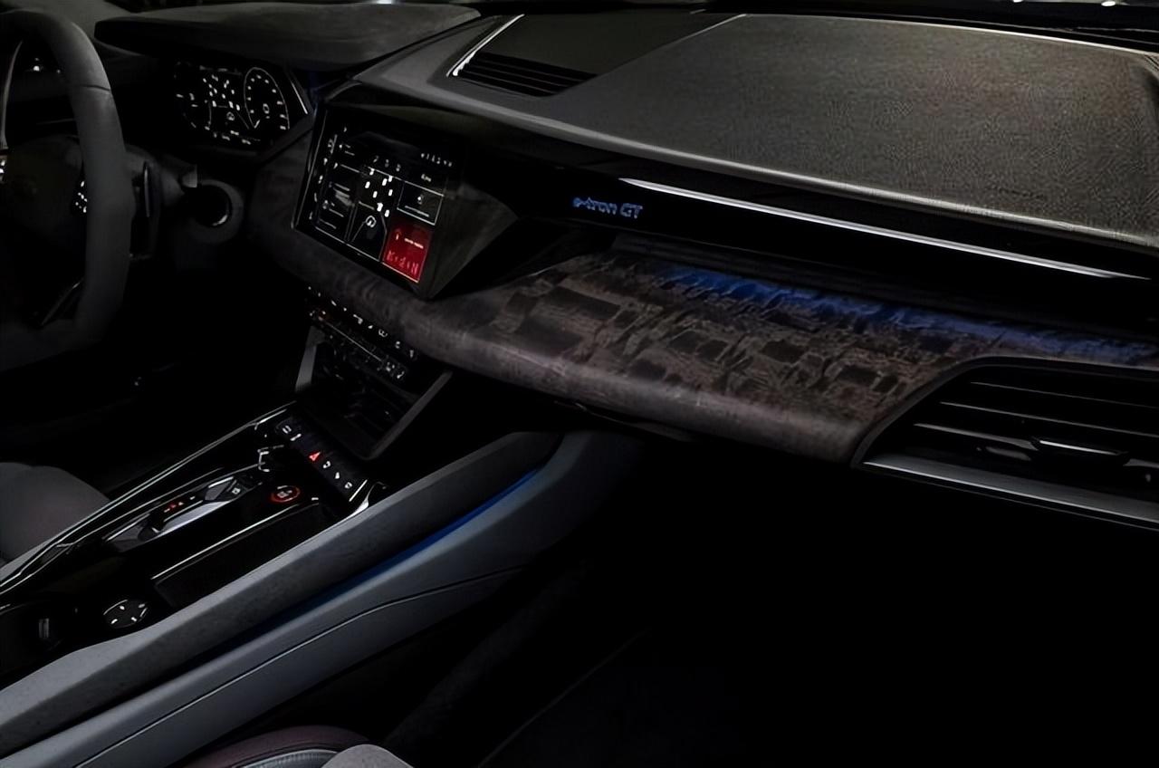 奧迪RS e-tron GT限量版車型的內(nèi)飾布局與普通版車型基本一致,只不過在用料材質(zhì)上會更加高級,大面積淺灰色麂皮材質(zhì)的鋪陳,還有大理石紋理的碳纖維裝飾面板以及可以看到碳纖維編織紋路的干碳裝飾面板鋪陳,還有深灰色磨砂材質(zhì)的金屬裝飾元素點綴,中控臺以及門板四周加入了亮黑色鋼琴烤漆裝飾面板和醒目的藍(lán)色可發(fā)光的RS e-tron GT徽標(biāo),再配上環(huán)繞四周的氛圍燈設(shè)計,營造出更加濃郁賽車氛圍。