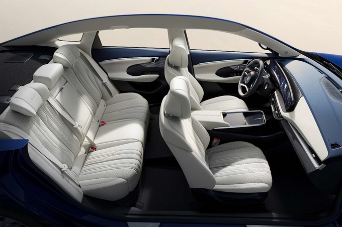 車內空間寬敞通透,圍繞游艇式懸浮中控臺營造出環繞座艙的大氣格局。前排以駕駛者為中心,從造型優美的30吋弧面6K屏、精巧的電子懷擋,到懸浮中控臺,結合典雅純凈的藍白內飾雙拼色,營造出駕馭豪華游艇的快意氛圍。