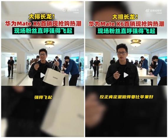 在線下渠道,Mate X6同樣銷售爆火,華為店門口排起長龍隊伍,目前門店已經(jīng)沒有現(xiàn)貨,消費者需要預(yù)約下單,有購機者表示能搶到感到很激動,對折疊屏的性能和輕薄感到滿意,還有粉絲稱“華為Mate X6強得飛起,做得肯定比蘋果好”。