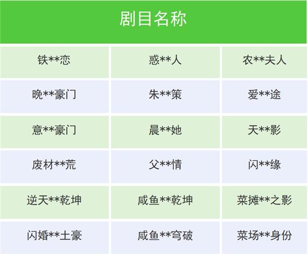 違規劇目包括《閃婚**土豪》《逆天**乾坤》《廢材**荒》《意**豪門》《咸魚**乾坤》《菜場**身份》等。