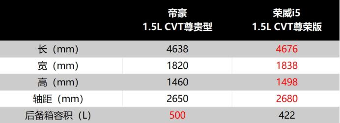 榮威i5的體型比帝豪更大,后排空間也更寬裕一些。而帝豪的后備箱空間更有優(yōu)勢,并且后排座椅支持40:60比例放倒。