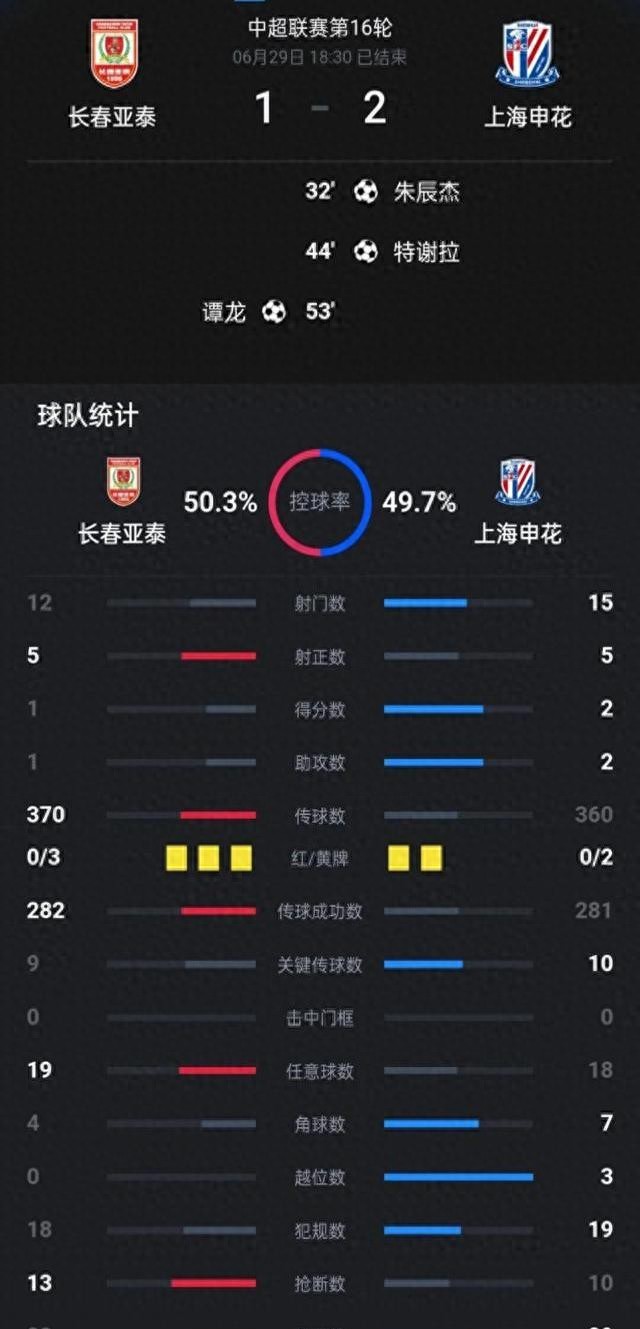 最扎心的是申花倆黃牌,亞泰自己領三張。