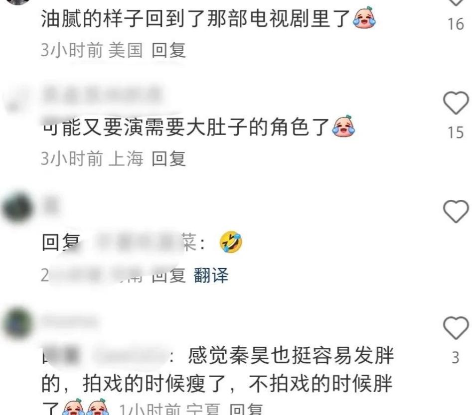 這次大家討論最多的還是秦昊的狀態。他留著長發,天熱頭發都塌了,肚子也鼓起來,短褲配淺口鞋的打扮,和以前在電視里的樣子完全不一樣。有人覺得他造型奇怪,還想起他之前分享過的減肥方法。