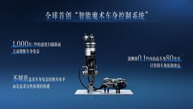 奔馳的“智能魔術車身控制系統”(E-ACTIVE BODY CONTROL)是全球首款可“自主看路”的智能底盤系統,每秒進行1000次路面掃描并主動實時調整車身姿態,提供舒適體驗;它還有越野功能,當車輛陷入沙地或雪地時,懸掛會自動高效地反復升高降低,以此增強輪胎的抓地力并提升牽引力從而脫困。該系統源于1999年全球首款搭載主動懸掛系統(ACTIVE BODY CONTROL)的奔馳CL級轎跑車。
