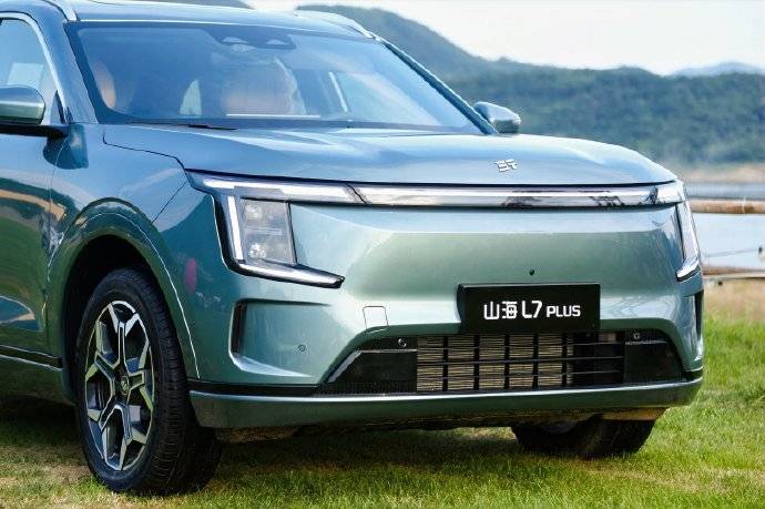 外觀上,山海L7 PLUS采用全新設計語言,前臉C形日行燈與貫穿式燈帶交織,縱向布局的LED大燈與上部封閉式格柵、下部矩形裝飾口搭配,營造科技感。前牌照框上方有前向攝像頭,支持智能駕駛功能。