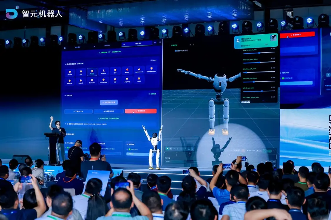為了實現這一目標,智元機器人公布了一系列重磅舉措。在技術層面,公司CTO彭志輝詳細解讀了以機器人本體為基礎,圍繞運動、交互、作業三大智能構建的“1+3”全棧技術戰略。會上,彭志輝發布了旨在將機器人二次開發難度降至零門檻的動作表達創作平臺“靈創平臺(LinkCraft)”,開發者可通過該平臺像“導演”一樣自由編排機器人行為。