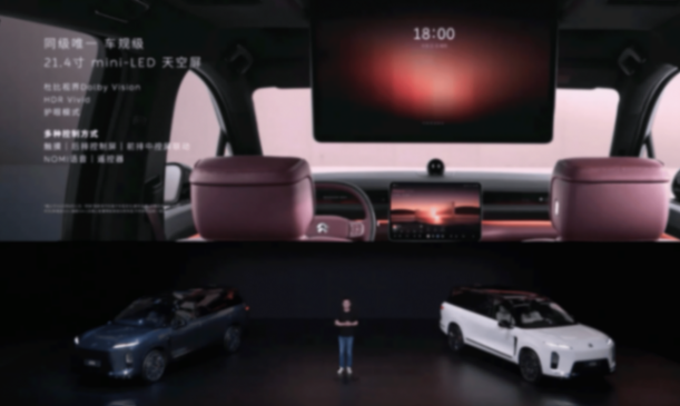 另外,第二排車頂加入同級唯一車規級21.4寸 mini-LED天空屏,帶來身臨其境的視聽體驗——這下冰箱、彩電、大沙發都給配齊了。