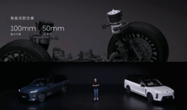 動力上,新車搭載了與蔚來ET9同款的雙電機四驅系統,前軸為180kW感應異步電機,后軸為340kW永磁同步電機,綜合功率高達520kW,扭矩達到700N?m。