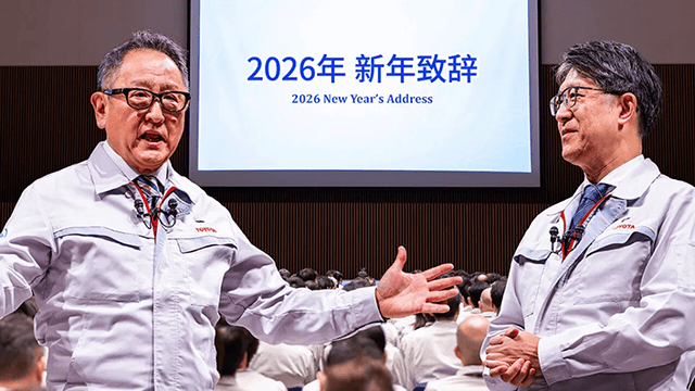 2026年開年,在日本愛知縣豐田市總部,豐田汽車會長豐田章男和豐田汽車社長佐藤恒治發表了面向全體員工的新年致辭。