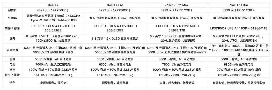 到2026年2月,17系列的產品邏輯其實非常清晰:小屏全能選小米17,大多數人的均衡甜點在小米17Pro,想要大屏和頂級續航就上小米17Pro Max,而追求影像上限與儀式感配件的,最終會落在小米17Ultra。